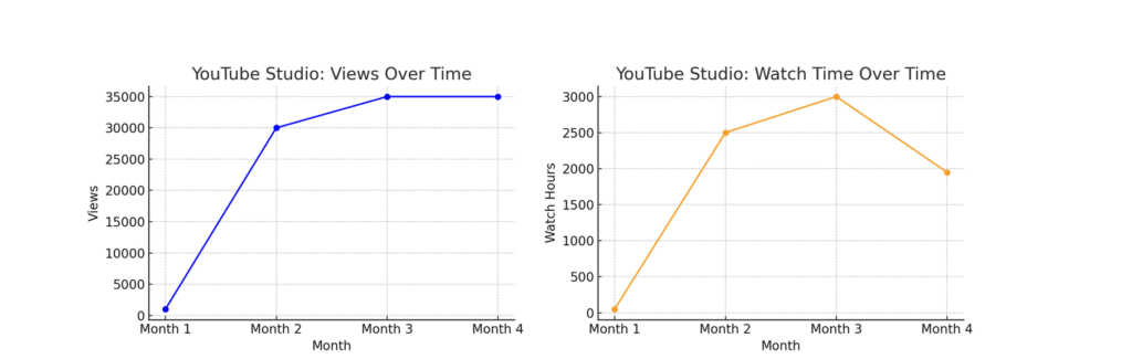 The first diagram below shows 2 standard line graphs from YouTube’s dashboard.